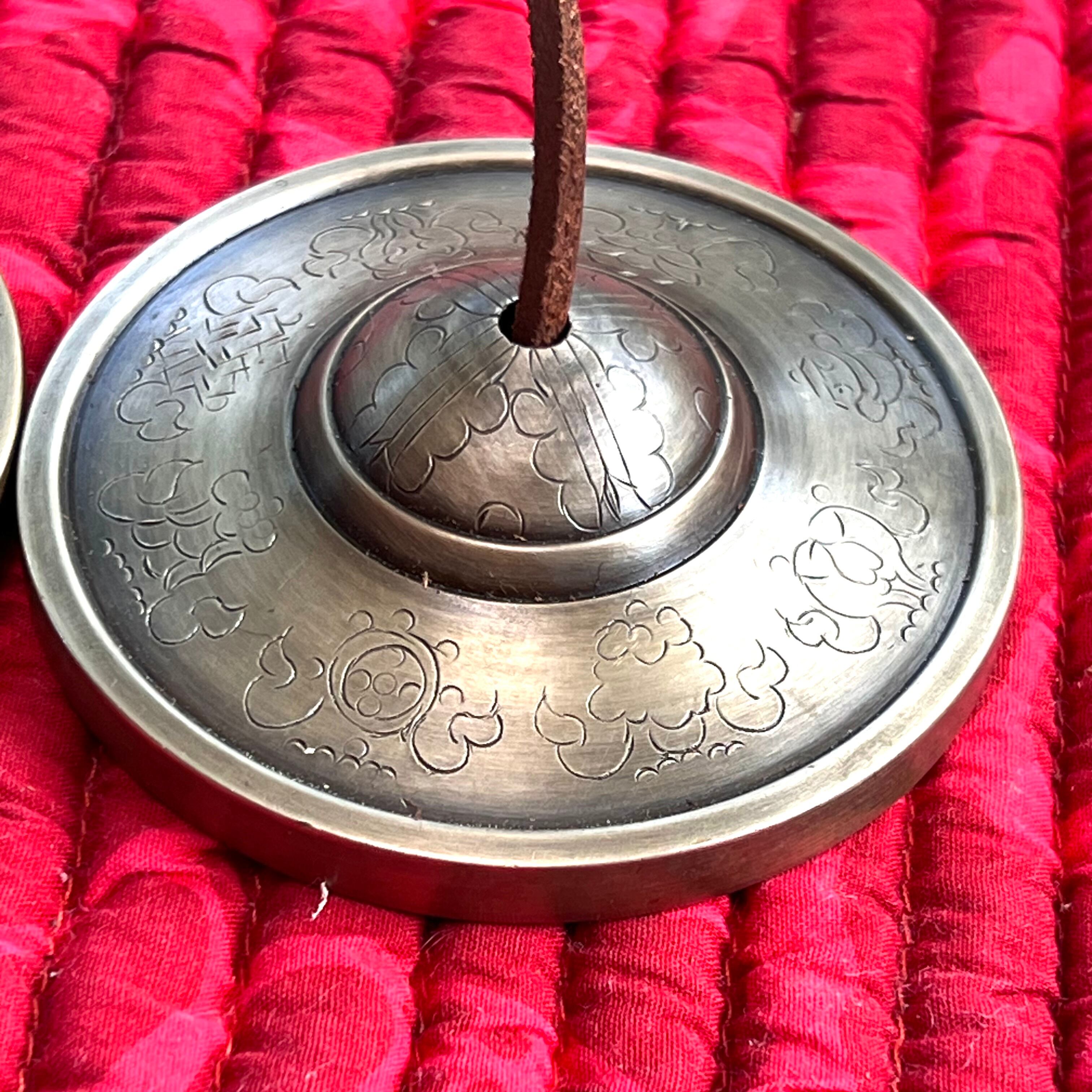 透き通るような音色のチベタン・ベルで、表面にはタシタゲをコミカルにデザインしたカービングが、鈴虫のような音色と相待って、存在感を漂わせます。