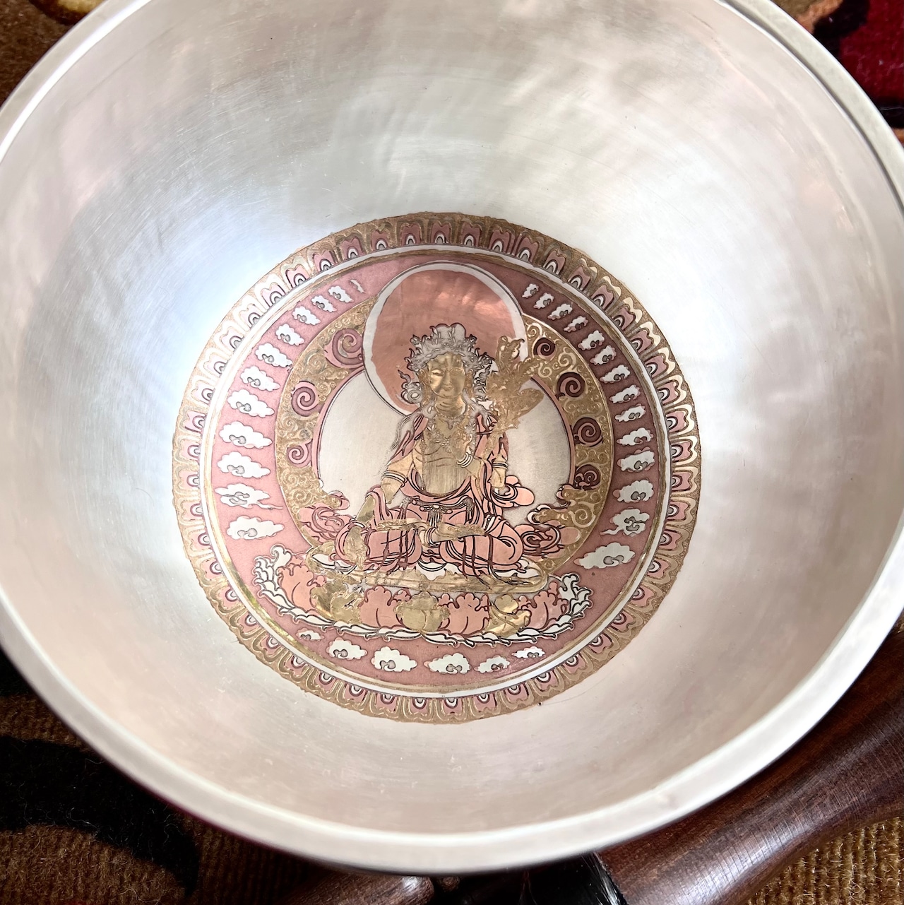 そんな菩薩が描かれたこのボウルは、手打ちによる深みのある澄んだ音色を奏でます。